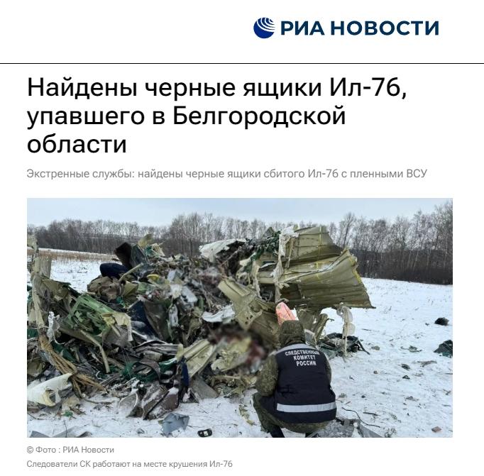中新網(wǎng)1月25日電 據(jù)俄新社當(dāng)?shù)貢r間25日報道,在俄羅斯別爾哥羅德州墜毀的伊爾-76運輸機的兩個黑匣子目前均已找到,已移交給調(diào)查人員。