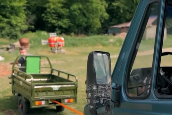 “三蹦子”作牽引車(chē)使用。視頻截圖