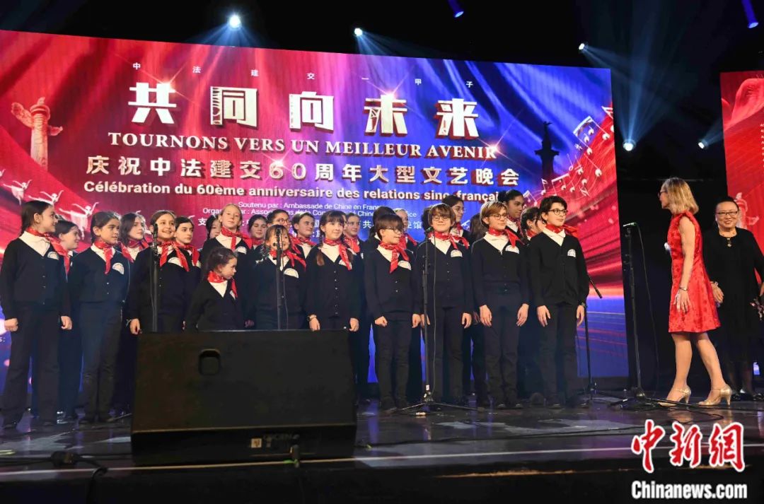 當(dāng)?shù)貢r間2024年1月16日晚,以“共同向未來”為題的慶祝中法建交60周年大型文藝晚會在巴黎舉辦。圖為法國寶利聲童聲合唱團演唱歌曲。李洋 攝