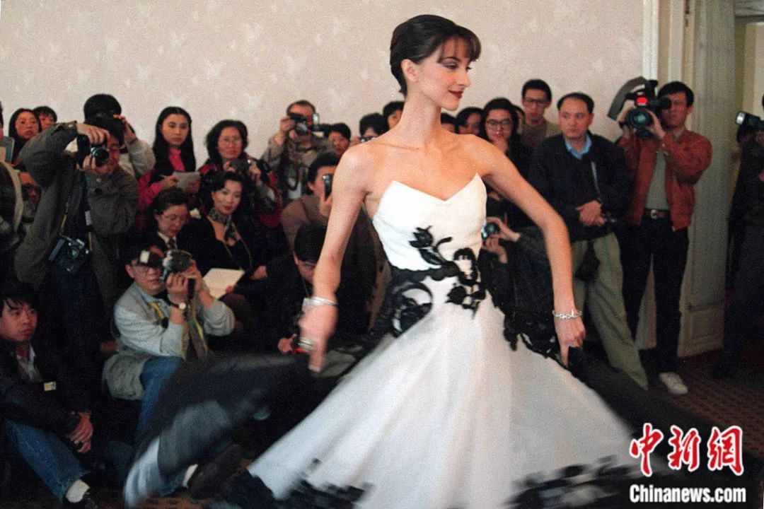 1996年,來自法國巴黎的時裝代表團在北京飯店展示服裝。錢興強 攝