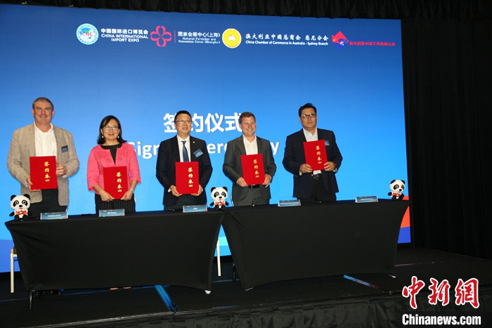 當(dāng)?shù)貢r(shí)間1月30日,第七屆中國(guó)國(guó)際進(jìn)口博覽會(huì)推介會(huì)在澳大利亞悉尼舉行。部分澳大利亞企業(yè)確認(rèn)參加第七屆進(jìn)博會(huì)并簽訂協(xié)議?!?中新社記者 顧時(shí)宏 攝