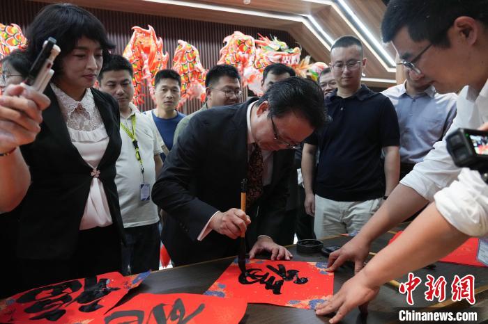圖為中國駐菲律賓大使黃溪連在現(xiàn)場書寫福字。張興龍 攝