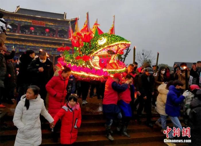 南昌“板凳龍”游街綿延千米 人山人海場面壯觀。劉占昆 攝
