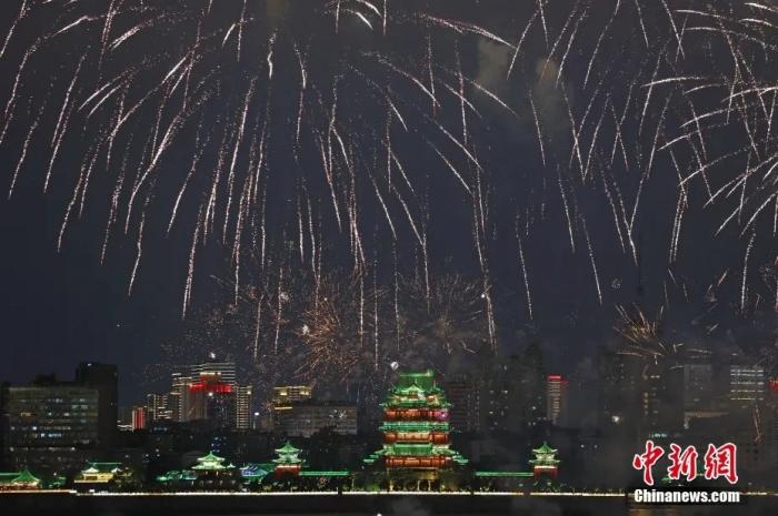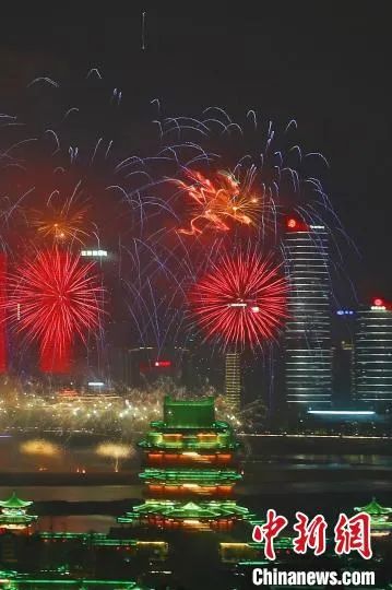 絢麗的煙花與古色古香的江南名樓滕王閣交相輝映;