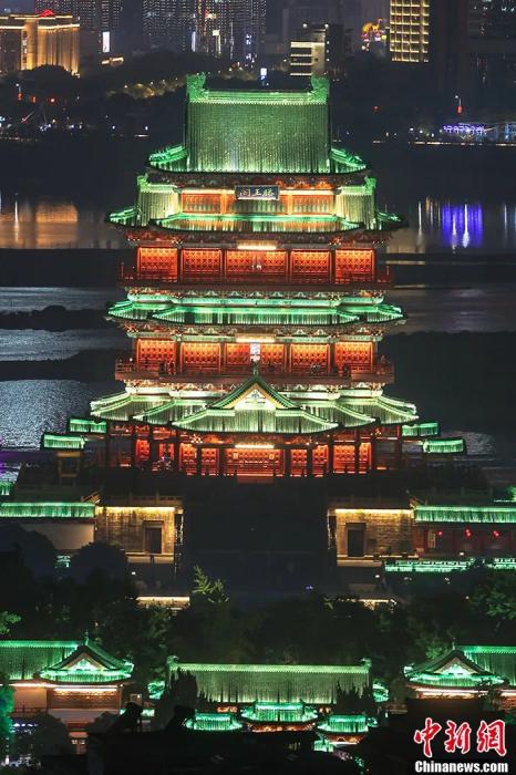 圖為無人機航拍古色古香年味十足的繩金塔歷史文化街區(qū),燈火璀璨,人潮涌動?!⒘?攝
