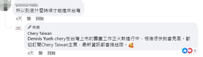 早前,奇瑞官方在臉書創(chuàng)立“Chery Taiwan”,并從去年開始更新專業(yè)內(nèi)容,針對一款中型運動型多用途汽車已多次發(fā)布宣傳影片。有不少臺灣網(wǎng)友在該賬號咨詢該款汽車何時會在臺灣上市,該賬號回復(fù),目前在臺灣上市的籌劃工作正火熱進(jìn)行中,相信很快就會見面。