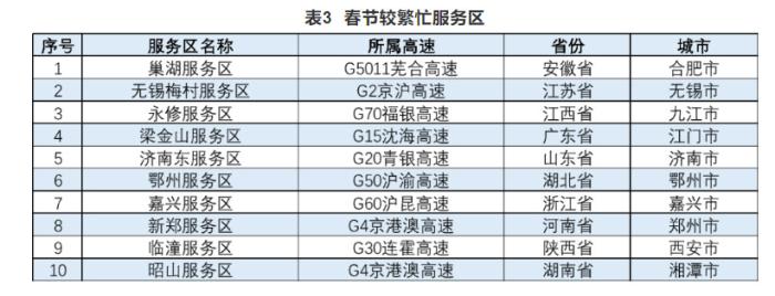 報告還公布了高速公路預計易發(fā)生擁堵緩行的路段、收費站以及較繁忙的服務(wù)區(qū)。