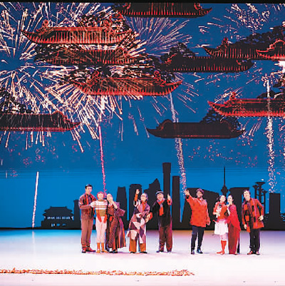 舞臺(tái)上,紅彤彤的燈籠、喜慶的春聯(lián)、熱鬧的廟會(huì)奏響了中國農(nóng)歷新年的序曲;“團(tuán)團(tuán)”和“圓圓”家的年夜飯彰顯了中國禮儀之邦的待客之道、尊老愛幼的傳統(tǒng)美德,一張全家福更傳達(dá)了中國人對(duì)親情的重視和對(duì)團(tuán)圓的向往;“胡桃夾子”大戰(zhàn)“年”獸,則充滿童趣地演繹了“過年”的傳說;而當(dāng)寓意吉祥的仙鶴在蒼勁的松樹下迎著朝陽翩翩起舞,西方芭蕾藝術(shù)在中國文化意象中煥發(fā)出了美妙的東方神韻;扇子舞、絲綢舞、風(fēng)箏舞、陀螺舞……一個(gè)個(gè)頗具中國元素的慶典場(chǎng)面讓阿聯(lián)酋觀眾游歷在瑰麗多姿的中國傳統(tǒng)文化中。