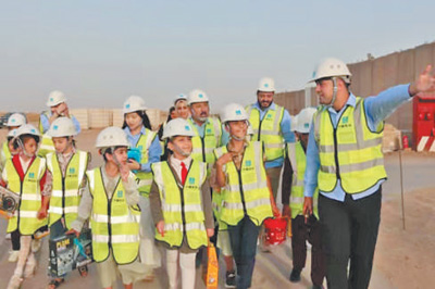 “小小工程師”在參觀機(jī)場項目。
