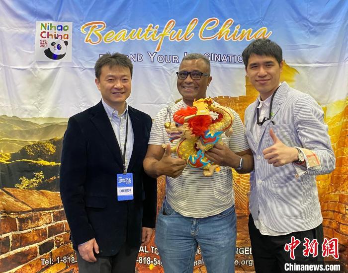適逢龍年春節(jié)前夕,中國(guó)展臺(tái)擺放著文化和旅游部為龍年“歡樂春節(jié)”全球活動(dòng)制作的吉祥物——“歡樂春節(jié)”吉祥龍,備受展會(huì)現(xiàn)場(chǎng)的美國(guó)民眾喜愛,不少參觀者很熟悉中國(guó)的生肖文化。