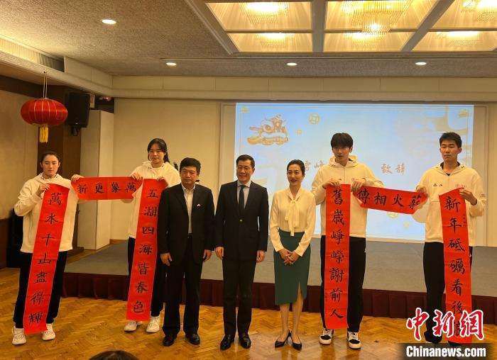此訪適逢中國(guó)龍年春節(jié)前夕,同學(xué)們還帶來(lái)了用毛筆書寫的春聯(lián)——上聯(lián)是“新年砥礪看后浪”,下聯(lián)是“舊歲崢嶸謝前人”,橫批為“薪火相傳”。(完)