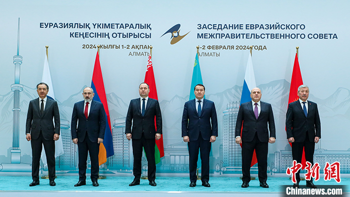 當?shù)貢r間2月2日,哈薩克斯坦阿拉木圖,歐亞政府間理事會會議舉行。 中新社發(fā) 哈薩克斯坦總理府網(wǎng)站供圖