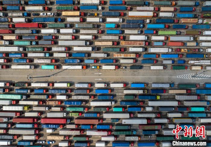 2月5日??谛潞8?,貨車排隊等待裝船。中新網(wǎng)記者駱云飛攝