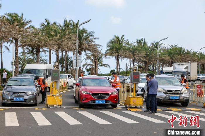 記者5日中午在海口市長樂路的小車查驗點看到,雙向4車道被改為東往西單向行駛,過海的小車排隊經(jīng)查驗點時,聯(lián)網(wǎng)的攝像頭拍下車牌信息,一旁電子屏馬上就顯示車主所購輪渡的發(fā)船時間。若發(fā)船時間在三個小時內(nèi),車輛直行直通港口。若超過三個小時,執(zhí)勤人員引導車輛駛離進港通道。