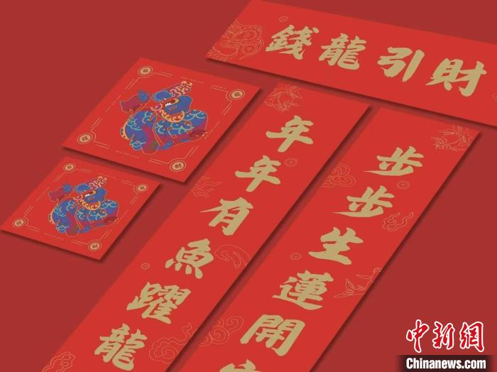 為迎接甲辰龍年,以傳統(tǒng)年畫“錢龍引進”主體圖案為變體應(yīng)運而生的不僅有春聯(lián)、福字、紅包等,還有日歷、桌布、夜燈等生活用品,蘊含著年畫元素的文創(chuàng)產(chǎn)品近期銷售火爆,頗受年輕人喜愛。