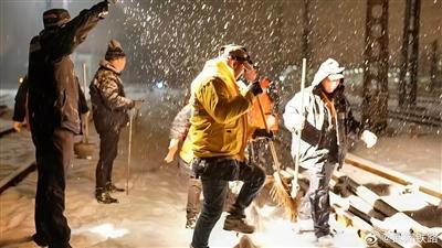 工作人員在線路上進(jìn)行掃雪除冰作業(yè) 圖據(jù)武漢鐵路局