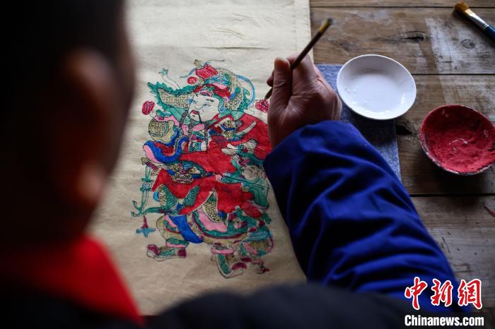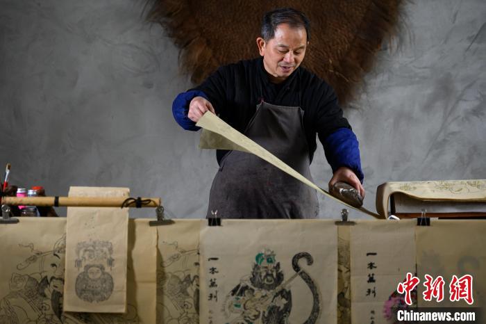 2月6日,梁平木版年畫國(guó)家級(jí)非遺代表性傳承人徐家輝制作年畫。中新社記者 何蓬磊 攝