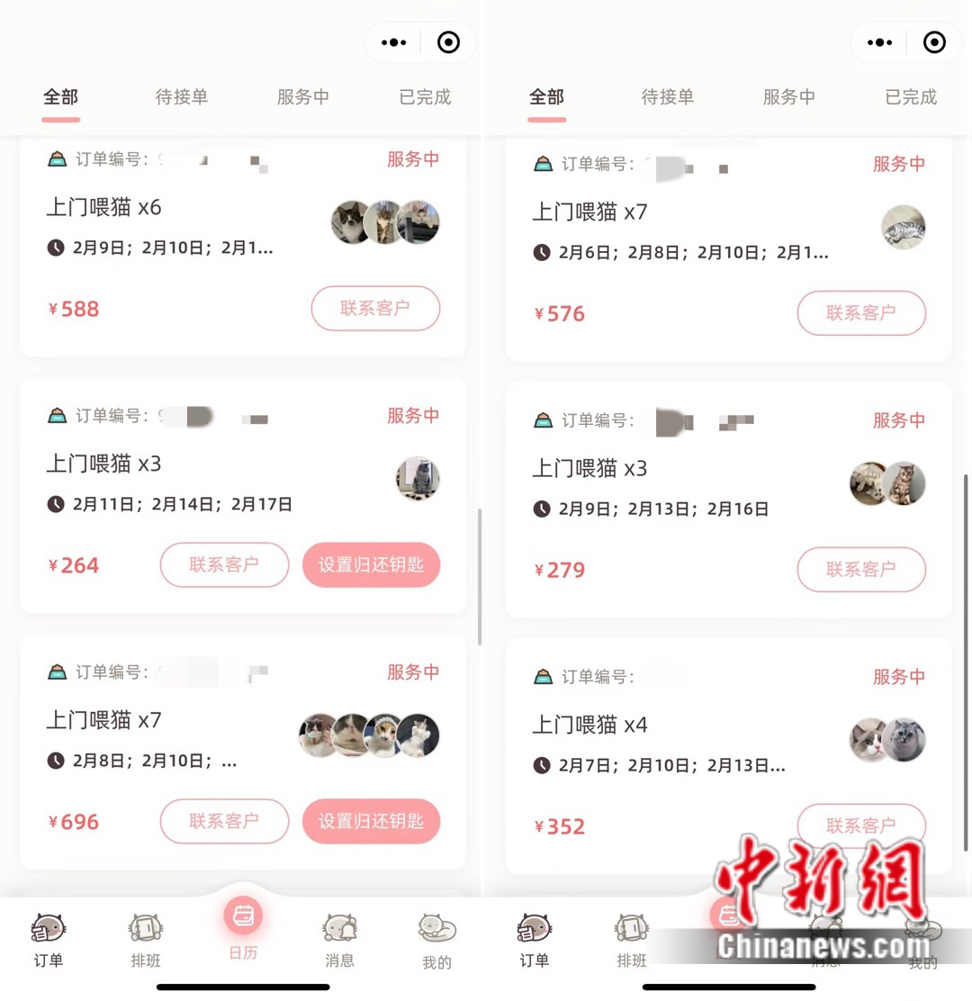 早在兩個月前,池女士就陸續(xù)接到了預約春節(jié)上門喂養(yǎng)的單子,到了1月底,由于訂單眾多,她不得不封單?!鞍创螖?shù)的話有超過150單了,好幾天都是一天20單?!卑垂?jié)假日平均80/次的價格來算,這個春節(jié)她將收入過萬。