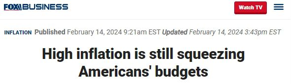 中國(guó)日?qǐng)?bào)網(wǎng)2月19日電 綜合美媒報(bào)道,1月份美國(guó)批發(fā)價(jià)格跳漲,表明美聯(lián)儲(chǔ)與通貨膨脹的斗爭(zhēng)或尚未結(jié)束,很可能迫使它推遲降息。多位商界人士也表示,美國(guó)的通脹形勢(shì)比許多投資者預(yù)期的更具粘性。與此同時(shí),通脹對(duì)普通美國(guó)人的現(xiàn)實(shí)負(fù)面影響一直在持續(xù)。