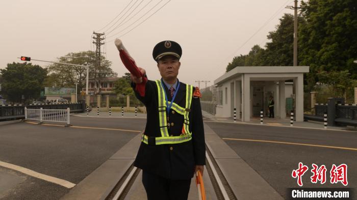 梁銘正在道口立崗接車。廣鐵集團供圖