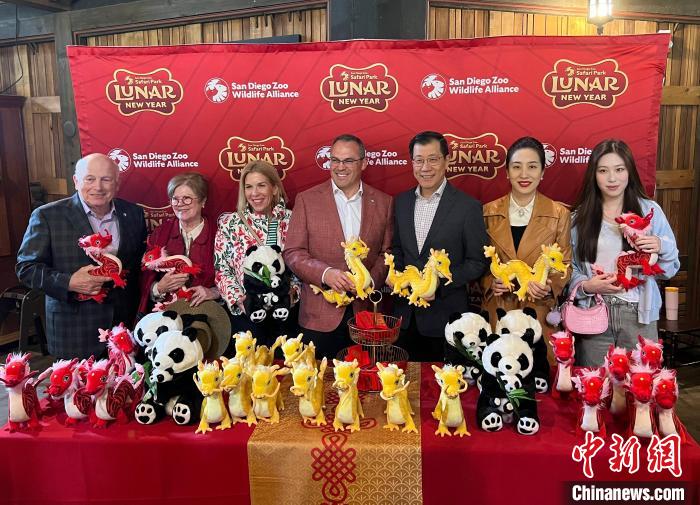 當(dāng)天上午,印著祥龍圖案的紅燈籠、結(jié)滿果實(shí)的金桔樹和鮮花盛放的桃樹將圣地亞哥野生動(dòng)物園裝點(diǎn)一新。中國駐洛杉磯總領(lǐng)事郭少春及夫人王薇、美國圣地亞哥動(dòng)物園野生動(dòng)植物聯(lián)盟總裁兼首席執(zhí)行官潘禮邦(Paul Baribault)與首席市場官穆德威(David Miller)等中美各界人士齊聚一堂,同當(dāng)?shù)馗髯逡崦癖姽蚕泶汗?jié)的喜悅。
