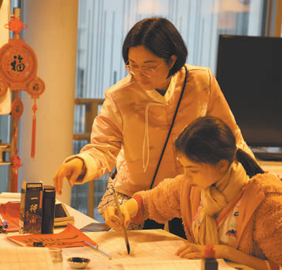2月3日,在法國巴黎中國文化中心“走進(jìn)中心過大年”活動(dòng)中,學(xué)員體驗(yàn)中國書法。