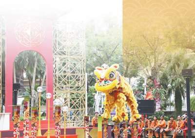 2月3日,在印尼雅加達(dá)翠貝卡廣場(chǎng)上,人們舉行舞獅表演喜迎新春。