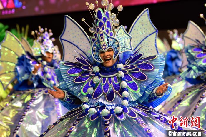 巴西圣保羅狂歡節(jié)的花車裝飾和演員服飾往往華麗無比,為觀眾奉上視覺盛宴。記者林春茵攝