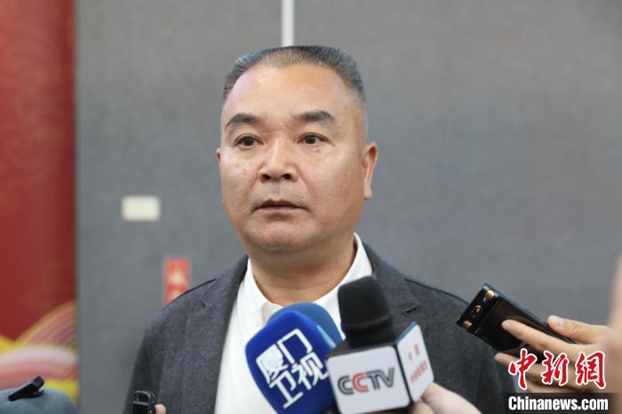 泉州晉江紅十字會(huì)高級(jí)顧問(wèn)李朝暉在金門(mén)水頭碼頭接受中新社等媒體采訪。中新社記者 楊程晨 攝