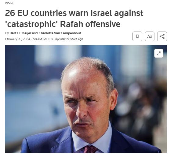 據(jù)報道,目前拉法已經(jīng)涌入了約150萬加沙地帶難民,愛爾蘭外長馬丁表示:“對拉法的進(jìn)攻絕對是災(zāi)難性的”。