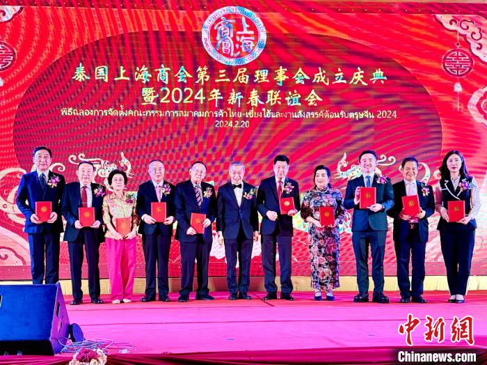 泰國上海商會第三屆理事會集體亮相。丁溢 攝