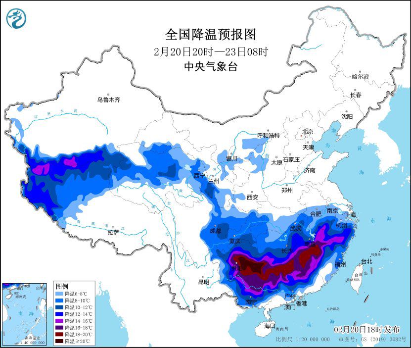 中新網(wǎng)2月20日電 據(jù)中央氣象臺(tái)網(wǎng)站消息,中央氣象臺(tái)2月20日18時(shí)繼續(xù)發(fā)布寒潮橙色預(yù)警:受寒潮影響,預(yù)計(jì),2月20日20時(shí)至2月23日,我國(guó)南方大部地區(qū)將出現(xiàn)降溫,日平均或最低氣溫普遍下降8~12℃,西南地區(qū)東南部、江南大部、華南中北部等地氣溫下降12~18℃,其中,貴州東南部、湖南西南部、廣西北部等地的部分地區(qū)累計(jì)降溫幅度可達(dá)20℃以上。2月23日前后,最低溫度0℃線將南壓到蘇皖南部至湖南南部、貴州南部一帶。