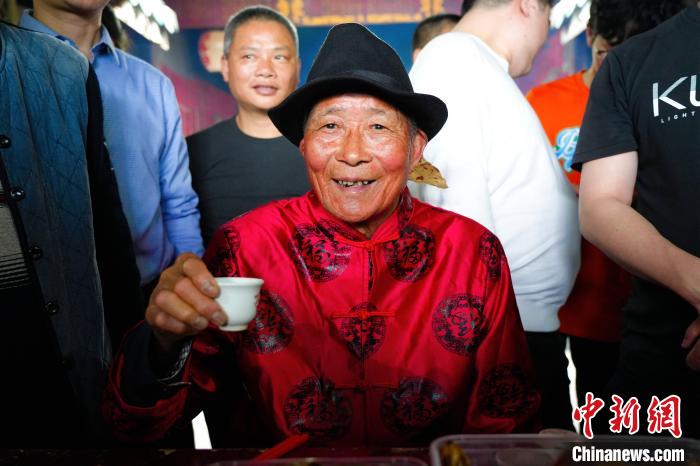 當(dāng)天14時,永定區(qū)坎市鎮(zhèn)盧氏祠堂周圍人頭攢動,鞭炮齊鳴,十分熱鬧。大家從十里八村涌到祠堂前,待用香燭、三牲敬過“林婆太”后,兩名壯漢攙扶著一位滿臉通紅、一身酒氣的“酒醉公”。