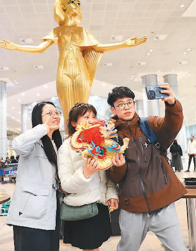 埃及是中國(guó)游客春節(jié)假期出境游的主要目的地之一。2月10日,開(kāi)羅國(guó)際機(jī)場(chǎng)舉辦“歡迎中國(guó)游客來(lái)埃及過(guò)大年”儀式,迎接當(dāng)天抵達(dá)的300余名中國(guó)游客?!敖鹱炙?、獅身人面像、埃及博物館、卡爾納克神廟……今年來(lái)埃及的中國(guó)游客尤其多,幾乎每個(gè)景點(diǎn)都能看到中國(guó)游客的身影。”埃及導(dǎo)游哈迪布告訴記者,春節(jié)是他最忙碌的時(shí)期。
