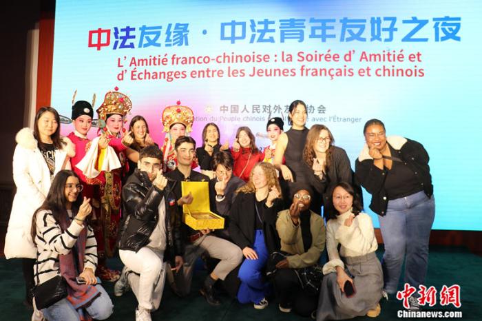 中新網(wǎng)北京2月25日電(黃方)2024年是中法建交60周年暨中法文化旅游年,形式多樣的人文交流活動(dòng)陸續(xù)開展。2月23日晚,元宵佳節(jié)前夕,應(yīng)中國人民對(duì)外友好協(xié)會(huì)(以下簡稱:全國對(duì)外友協(xié))邀請(qǐng),歐中友好協(xié)會(huì)(以下簡稱:歐中友協(xié))青少年代表團(tuán)、法國人民援助會(huì)青年代表團(tuán)和中國戲曲學(xué)院師生等150人在北京參加“中法友緣·中法青年友好之夜”聯(lián)歡活動(dòng),開啟中法青年友好交流周。