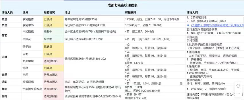 五花八門的副業(yè)她都嘗試過,目前比較穩(wěn)定、收入占比最大的是去年11月開始做的夜校。那段時(shí)間,年輕人上夜校的話題火爆,她發(fā)現(xiàn)成都還沒有,于是第一個(gè)在成都建起夜校社群,以組團(tuán)的人數(shù)優(yōu)勢去找商家談低價(jià)課,類似于興趣班的拼多多,目前社區(qū)差不多有5000人。