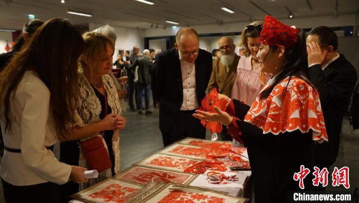 來賓欣賞剪紙非遺手工藝。柏林中國文化中心供圖