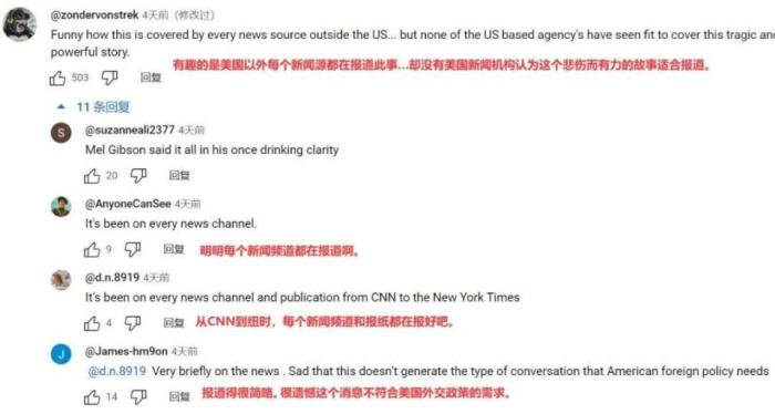 英國天空新聞電視臺報道下方的評論區(qū),高贊評論誤以為當時沒有美國媒體報道此事