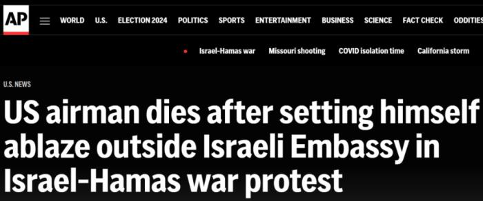《馬卡》歷史地位飆升的一貼—— 《美空軍在以使館自焚為巴勒斯坦發(fā)聲: “我不會再當種族滅絕的同謀”》