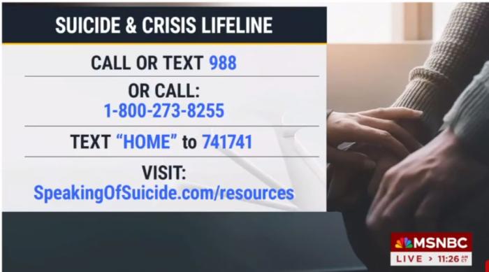 前面還挺正常,就是對事件的報道,畫面也在播報員和現(xiàn)場鏡頭之前互相切(順帶一提MSNBC的說辭也是“抗議哈以戰(zhàn)爭”),然后話鋒突然一轉(zhuǎn):“如果你發(fā)現(xiàn)有人有心理健康風險,請及時撥打預防自殺熱線XXXXX……”