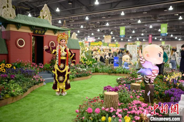當(dāng)?shù)貢r(shí)間3月2日,一年一度的費(fèi)城花展在美國賓夕法尼亞州費(fèi)城開幕,以“功夫鄭州——花俏嵩山”為主題的鄭州展園當(dāng)天在花展上亮相。圖為鄭州市豫劇院演員袁娜表演豫劇。 Franck Zhou 攝