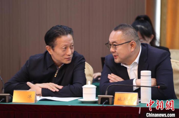 3月5日,全國政協(xié)十四屆二次會議僑聯(lián)界小組會議在北京舉行。全國政協(xié)委員施乾平(右)與榮洋(左)交流。中新社記者 蔣啟明 攝