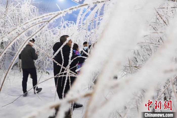“五星霧凇”出現(xiàn)在室內(nèi),引游客駐留?!∩n雁 攝