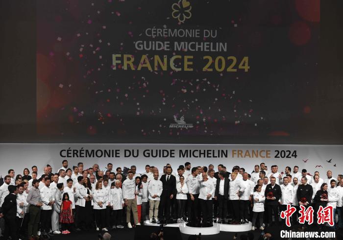 當?shù)貢r間3月18日,2024年《米其林指南》法國版在法國中部城市圖爾出爐。2024年法國版指南新增62家星級餐館,這些餐館的經(jīng)營者在當天舉行的儀式上集體合影。中新社記者 李洋 攝