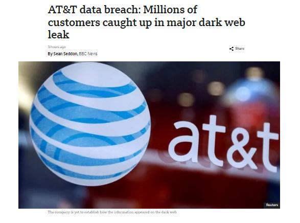 中新網(wǎng)3月31日電 據(jù)英國廣播公司(BBC)當?shù)貢r間31日報道,美國電信巨頭公司AT&T宣布,正在調(diào)查一起持續(xù)多周的數(shù)據(jù)泄露事件,該事件涉及該公司數(shù)千萬客戶的數(shù)據(jù)被發(fā)布到暗網(wǎng)上。