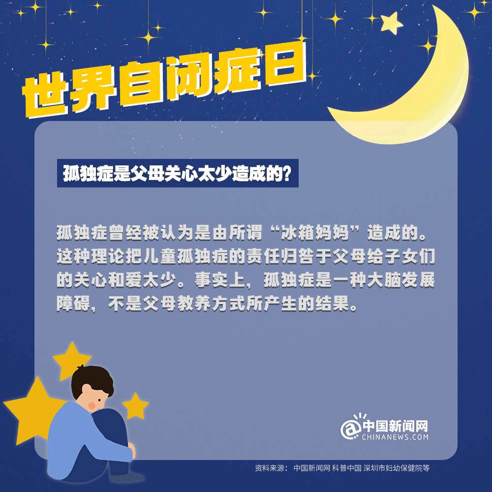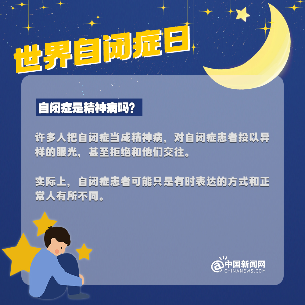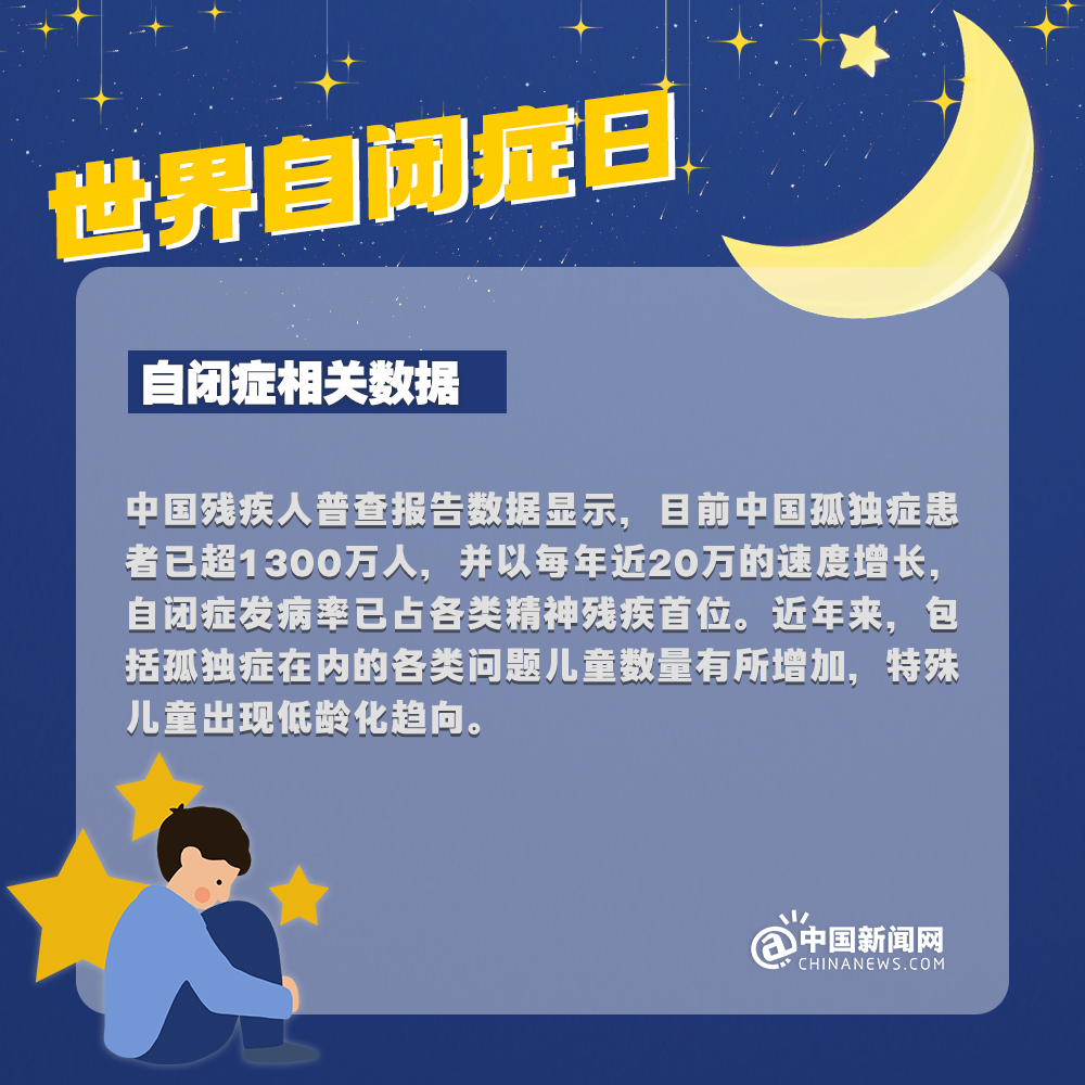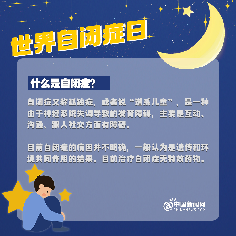 中新網(wǎng)4月2日電 自閉癥兒童,也被稱為“來自星星的孩子”,他們的情緒難以捉摸,他們的思想難以表達,他們像星星一樣孤獨地游離在宇宙中……有數(shù)據(jù)顯示:目前中國自閉癥患者已超1300萬人。自閉癥有哪些認知誤區(qū)?該如何早期識別自閉癥?詳情↓關愛自閉癥患者,讓星星的孩子有愛不孤單!
