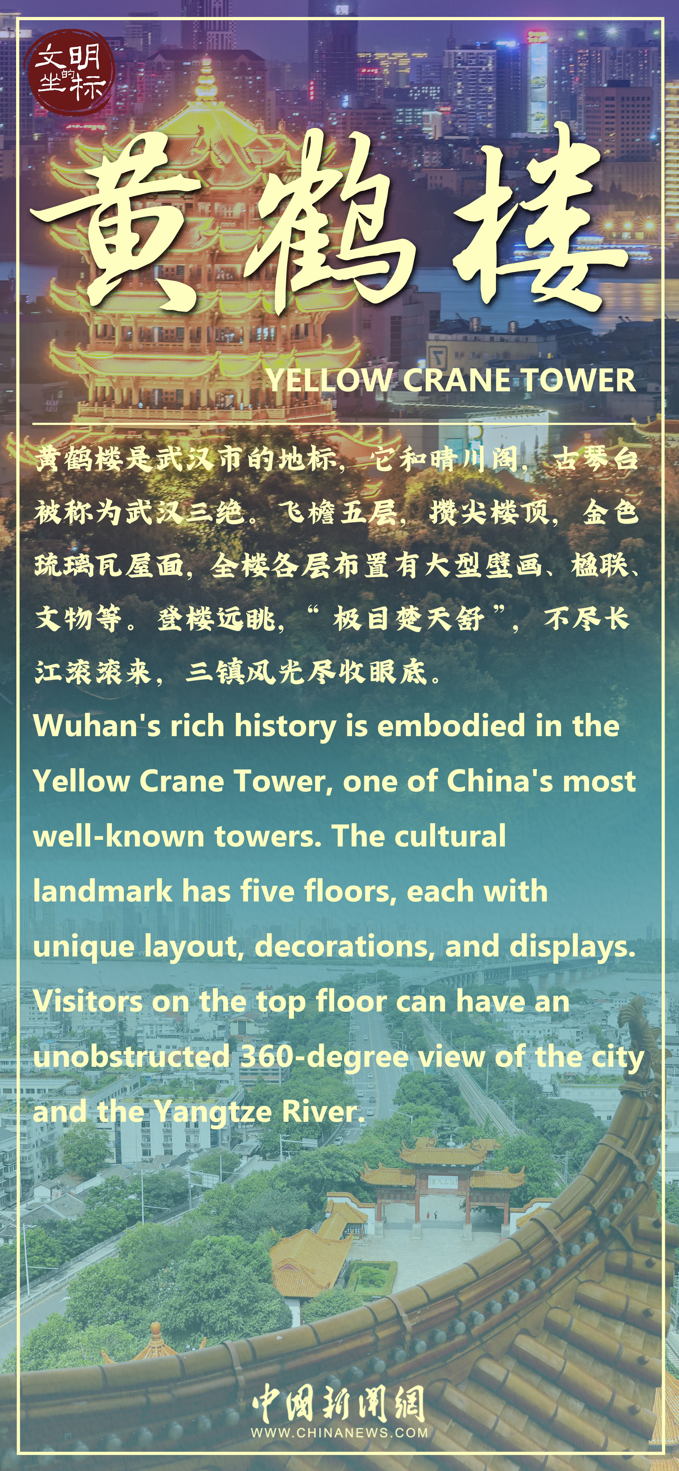 “昔人已乘黃鶴去,此地空余黃鶴樓。黃鶴一去不復(fù)返,白云千載空悠悠?!碧柗Q“天下江山第一樓”的武漢黃鶴樓,在歷史上曾是無數(shù)文人揮灑墨香的靈感源泉。與其相關(guān)的詩詞約有1500首,屈原行吟于此、岳飛填詞于此、李白擲筆于此……豐厚的文化內(nèi)涵,令黃鶴樓成為“凝固的詩”“立體的畫”。《夜上黃鶴樓》項目開啟了千年名樓沉浸式夜游新體驗,悠揚的旋律、炫酷的光影、古風(fēng)古韻的歌舞,讓無數(shù)游客流連忘返。春光明媚,櫻花盛放,來武漢觀賞黃鶴樓的“櫻花版”新皮膚,感受千年名樓的非凡氣韻和文化精神。
