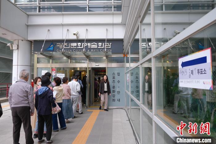韓國第22屆國會議員選舉4月10日舉行,各政黨候選人將角逐國會300個(gè)議席。圖為選民排隊(duì)進(jìn)入首爾市廣津區(qū)一處投票站。中新社記者 劉旭 攝