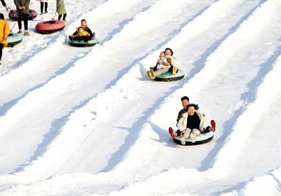 1月2日,游客在臨城縣綠嶺冰雪樂園滑雪圈,享受冰雪樂趣。河北日?qǐng)?bào)記者 趙永輝攝