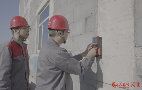 雄東項(xiàng)目管理部人員對500千伏配電裝置樓框架柱鋼筋保護(hù)層厚度進(jìn)行專項(xiàng)檢測。 穆靖攝